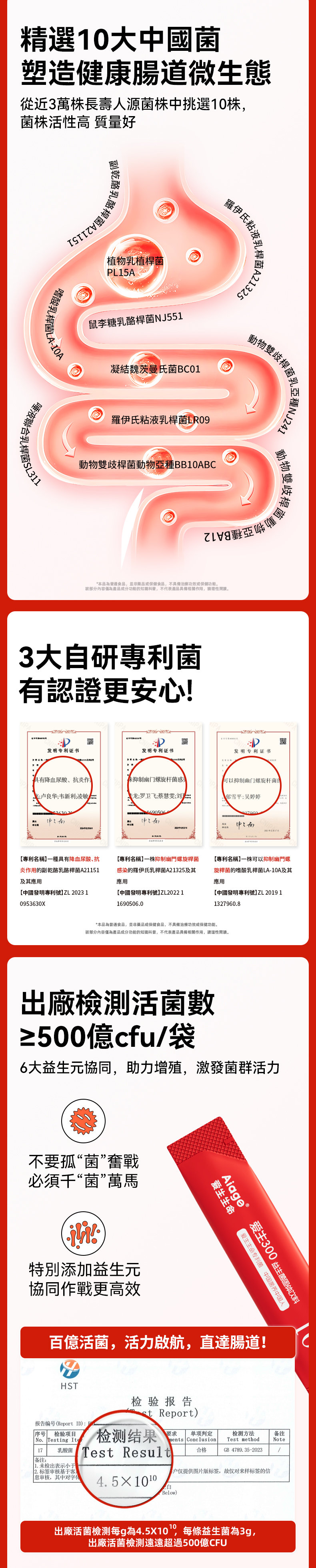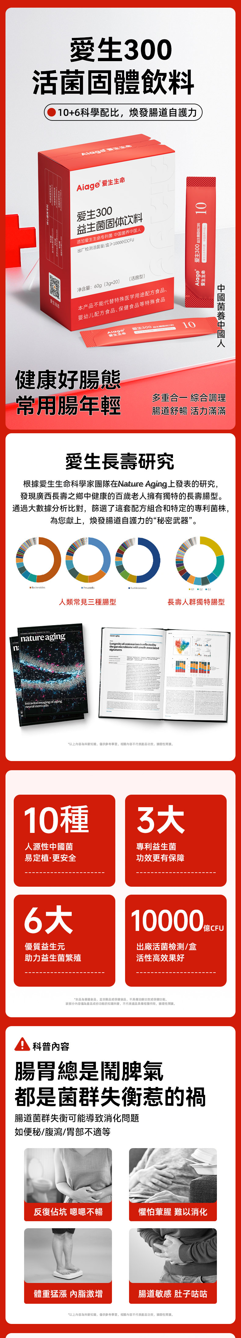 【愛生300益生菌固體飲料】10000億CFU/盒 60g(3g*20條)/盒 三高人群 大便不成形 慢病調理者 腸胃不適 便秘