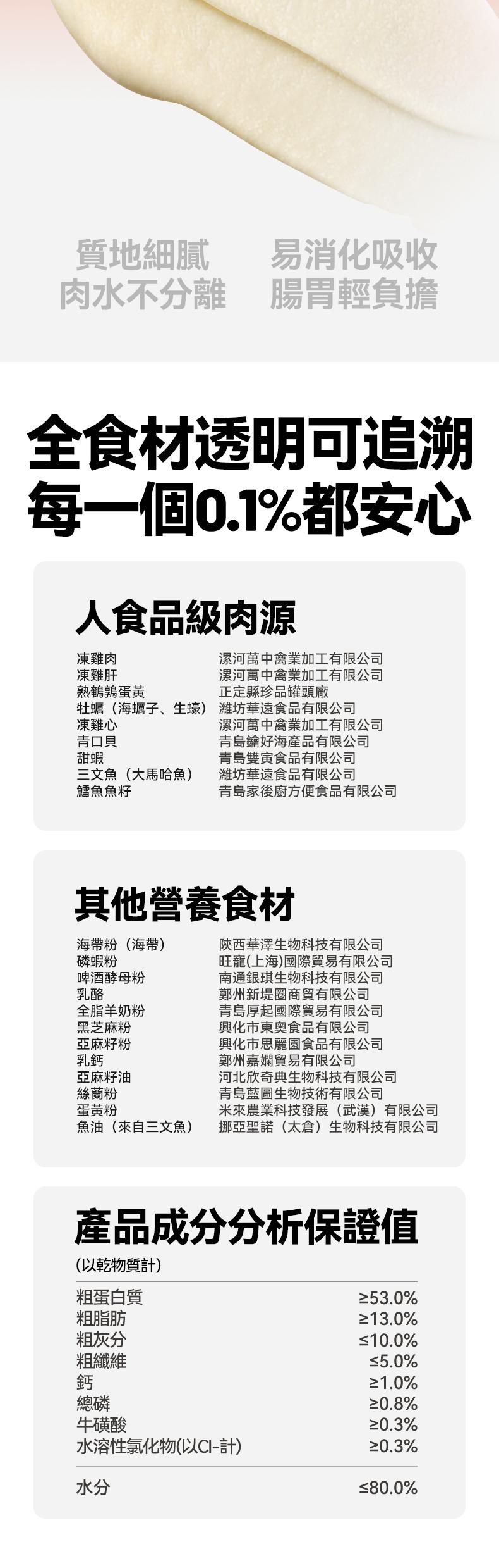 1、100%全食材配方,所有營養來自食材本身,無任何添加劑;
