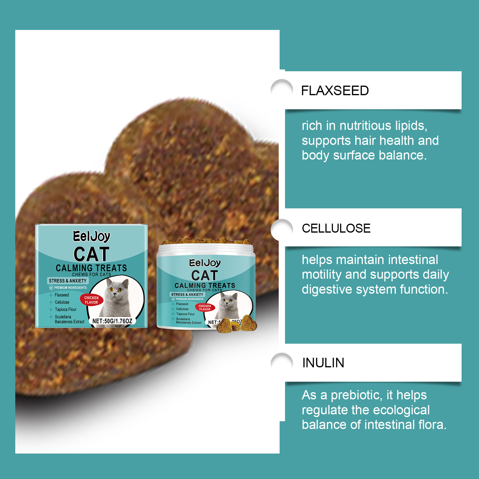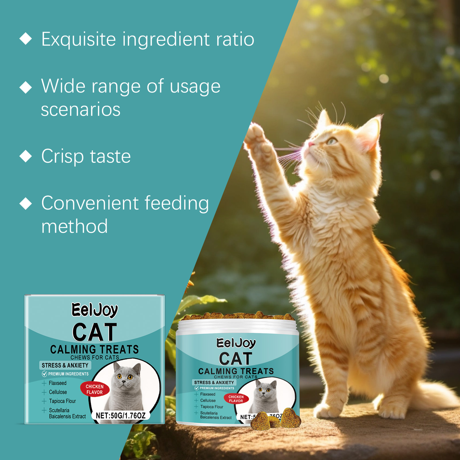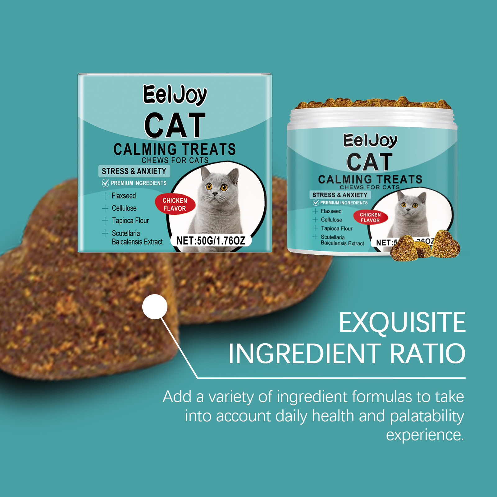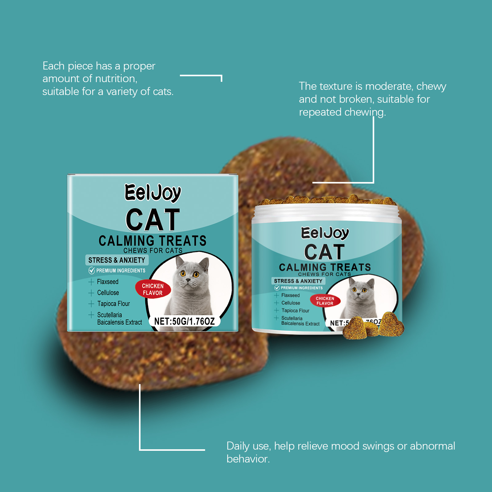 EelJoy Cat Snack Chewable Tablets Daily Cat Supplement Nutritional Emotional Care Meat Flavored Snacks