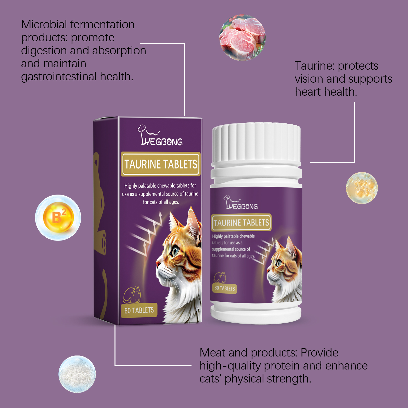 High-quality Yegbong Cat Complex Taurine Tablets Pet Nutritional Supplement Multi-dimensional Taurine Tablets Special for Cats for your beloved pets. Order now!