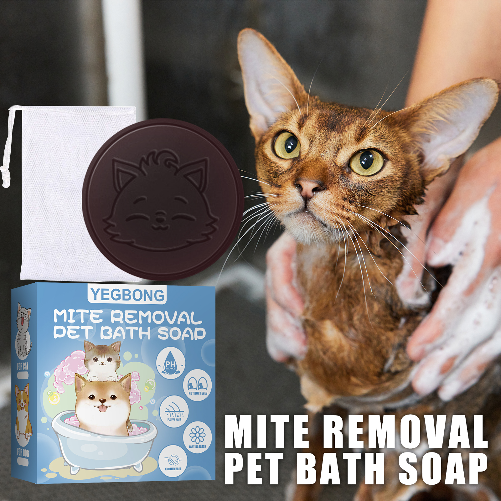 High-quality Yegbong Pet Mite Removal Bath Soap Dogs and Cats Sterilization Body Deodorization Cleaning Bathing Supplies for your beloved pets. Order now!